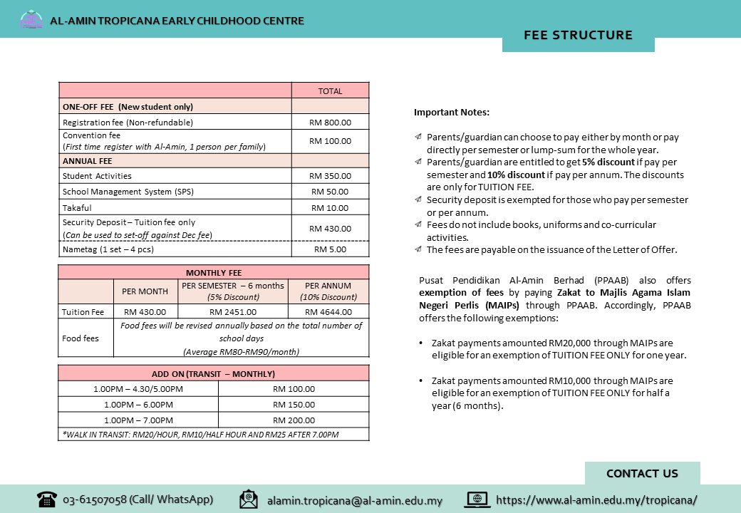 FEE STRUCTURE (AATECC - EARLY CHILDHOOD CENTRE)