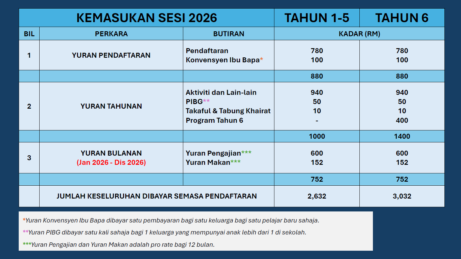 JADUAL PEMAKAIAN MURID 2026