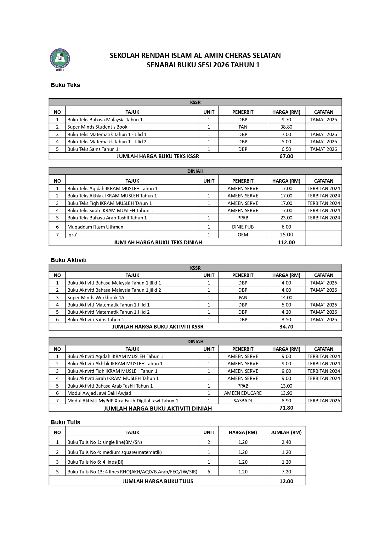 SENARAI BUKU SESI 2026 TAHUN 1