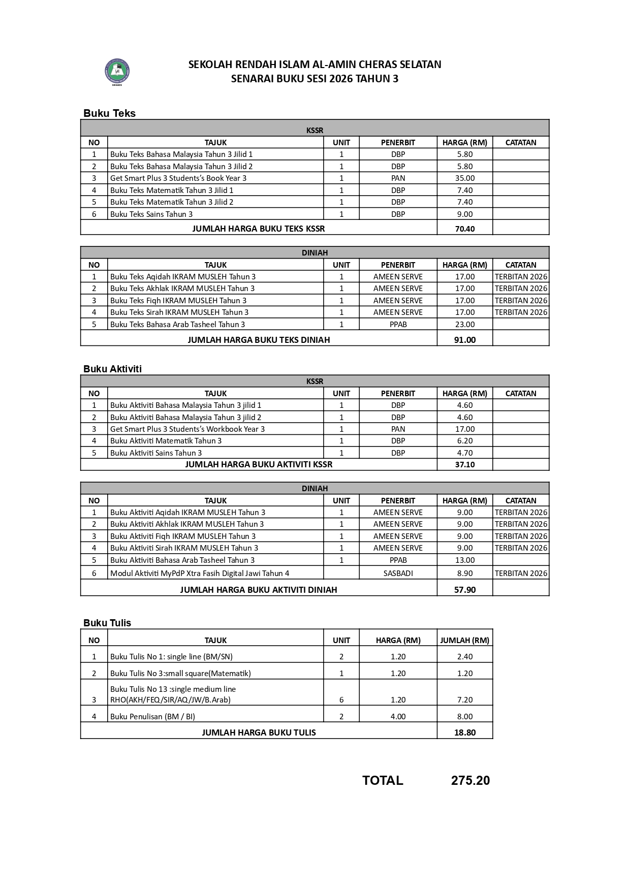 SENARAI BUKU SESI 2026 TAHUN 3