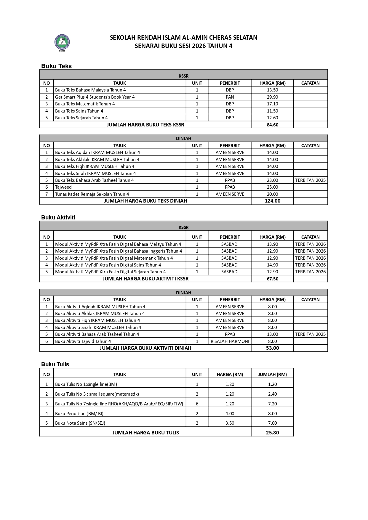 SENARAI BUKU SESI 2026 TAHUN 4