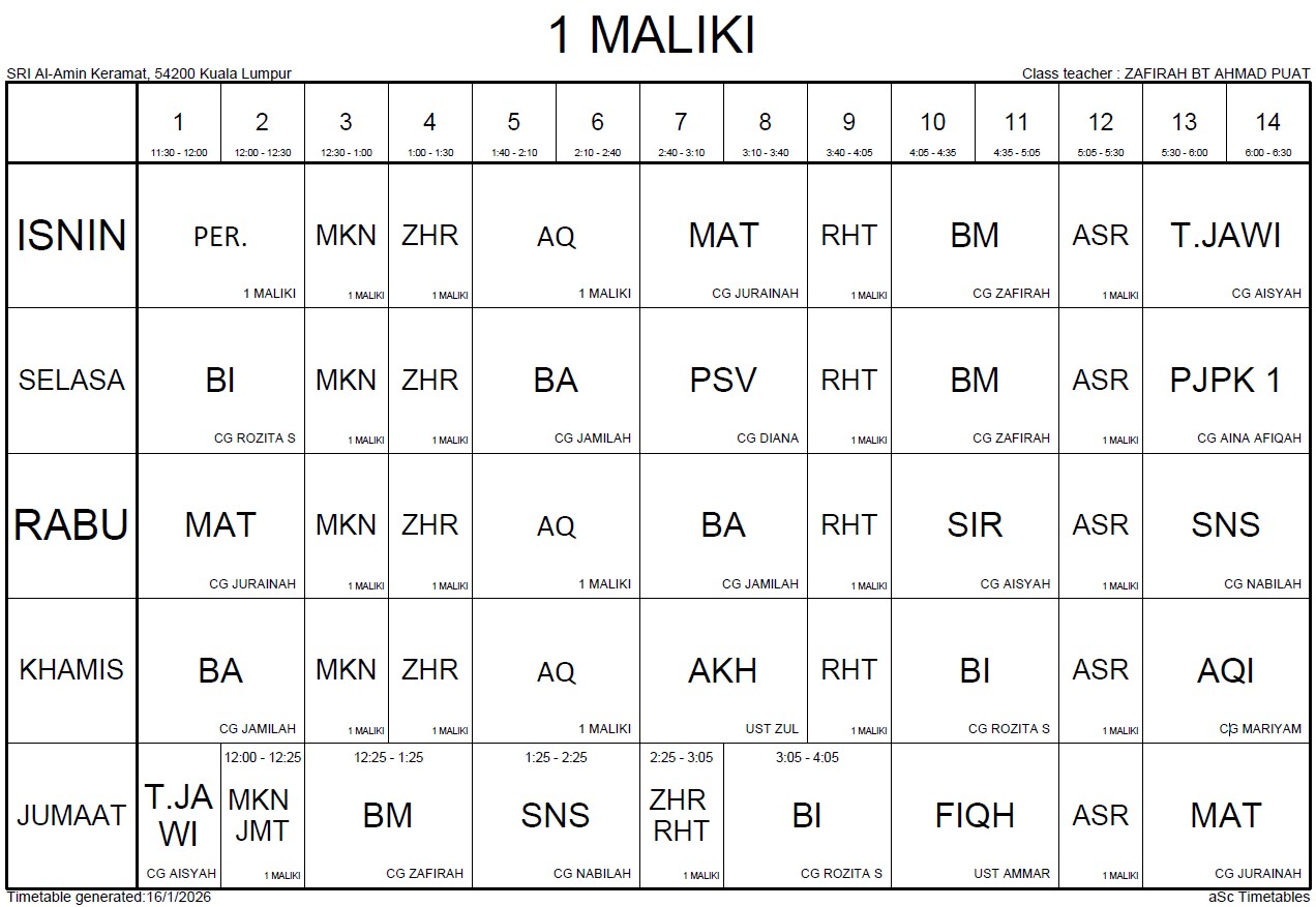 JADUAL WAKTU 1 MALIKI 2025