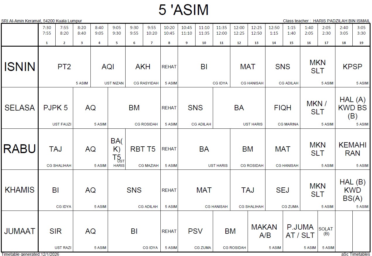 🟪 TAQWIM UNIT TARBIYYAH MURID
