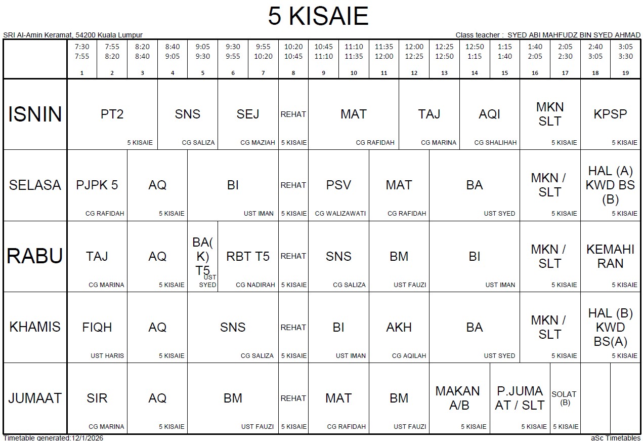 🟪 TAQWIM UNIT TARBIYYAH MURID