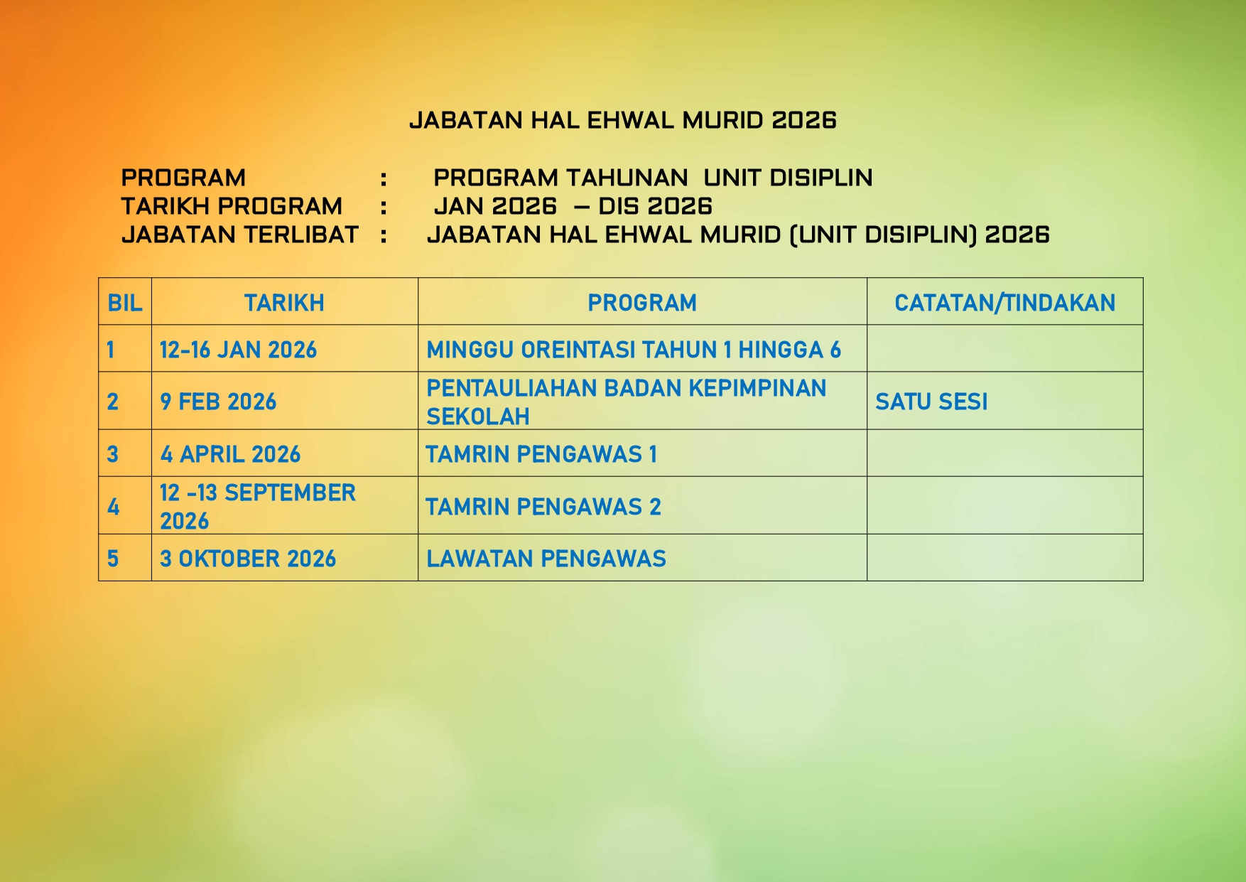 🟨 TAQWIM UNIT DISIPLIN MURID